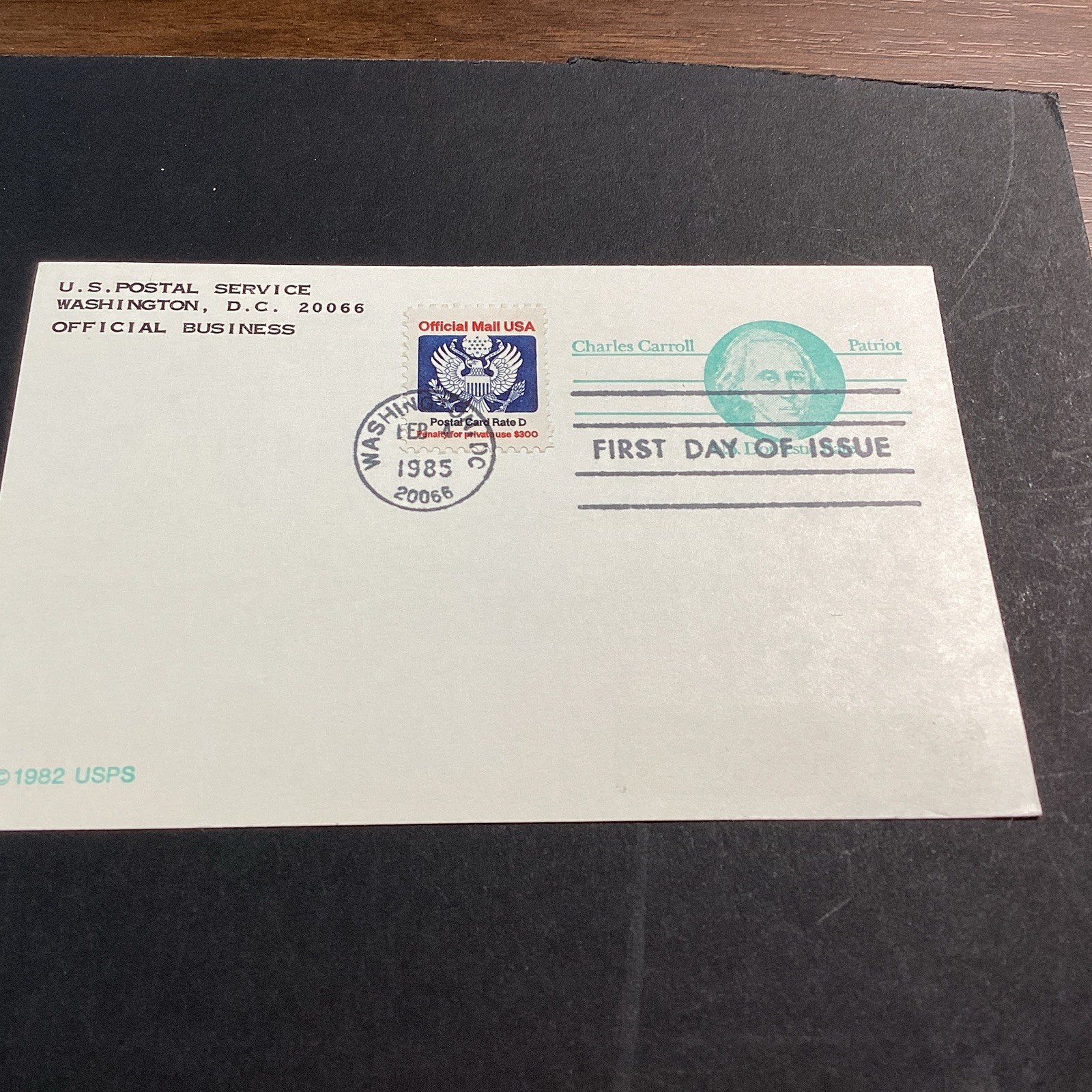 SCOTT# UX105 "Charles Carroll" O135- 1985 D-Rate-POSTCARD FDC - US. Shipped with USPS Ground Advantage.