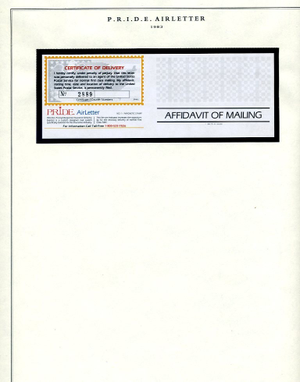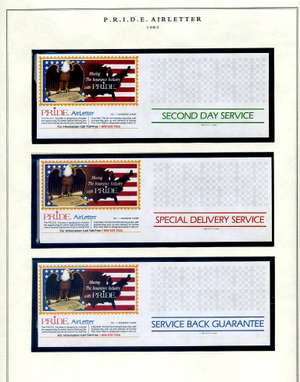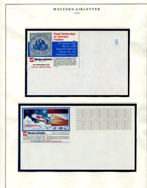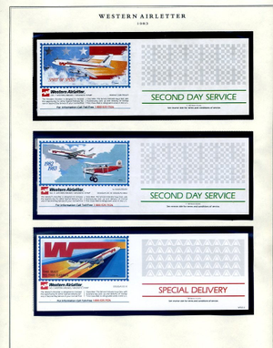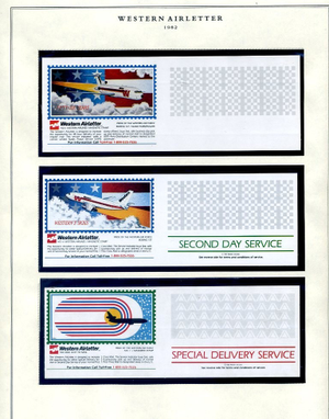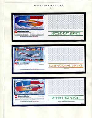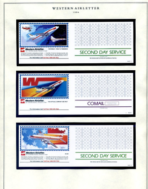 The Western Air Letter Service, operated by the Hanifin Air Letter Company from 1982 to 1984, was a private postal venture that provided coast-to-coast second-day delivery. Founded by Jim Hanifin in partnership with Western Airlines, the service functioned by having customers purchase a proprietary service stamp (initially $1.00) and applying it alongside a standard 20-cent USPS stamp. Letters were dropped at designated retail locations—such as banks and Fotomat kiosks—transported by Western Airlines to the destination city, and then entered into the USPS system for final local delivery.