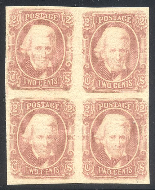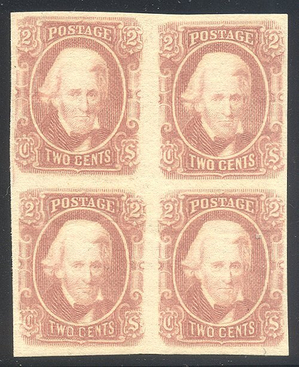 Scott #8a: 1863 2c Pale Red Centering & Condition: Mint. Fresh. Very Fine Block. Reverse (Gum Side): Original gum. Never Hinged. Couple natural gum creases. Faults / Imperfections: None The item pictured is the actual item you are purchasing, unless otherwise noted. I also offer an interest-free layaway plan. Ask me about it!" All items will be mailed a day or two after payment is received. ![]() ![]() ![]() --------------------------------------------------------------------------------
