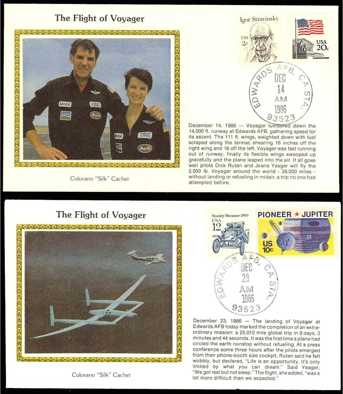 THE FLIGHT OF VOYAGER COVERS - Rare Colorano silk cachets! RETAIL $250.00