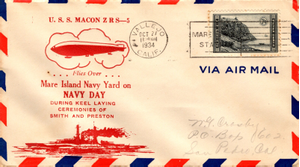 Airship USS Macon Flies over Mare Island Navy Yard, CA, Oct 21, 1934