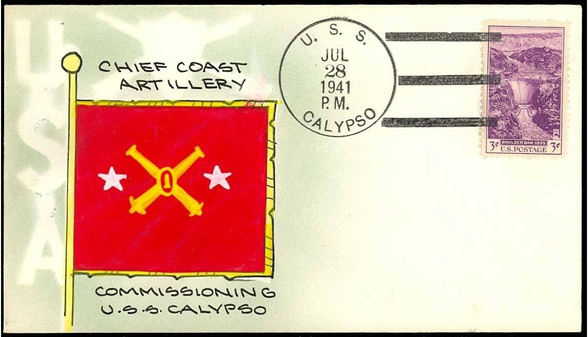 USS CALYPSO AG-35 Cutter - Mae Weigand Hand Painted Naval Cover