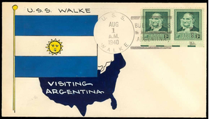 USS WALKE - Sims class destroyer - Mae Weigand hand painted cachet
