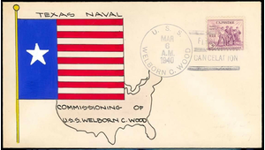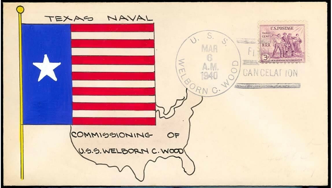 USS WELBORN C. WOOD - DD-195 Destroyer - Mae Weigand Hand Painted 1st Day Cancel