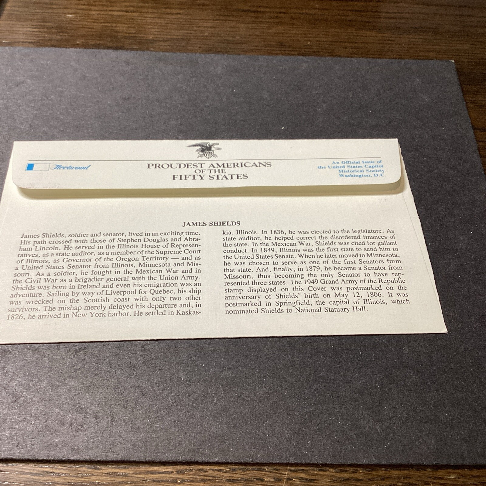 JAMES SHIELDS- ILLINOIS 1984 FLEETWOOD PROUDEST AMERICANS CACHET COVER-US. Shipped with USPS Ground Advantage.