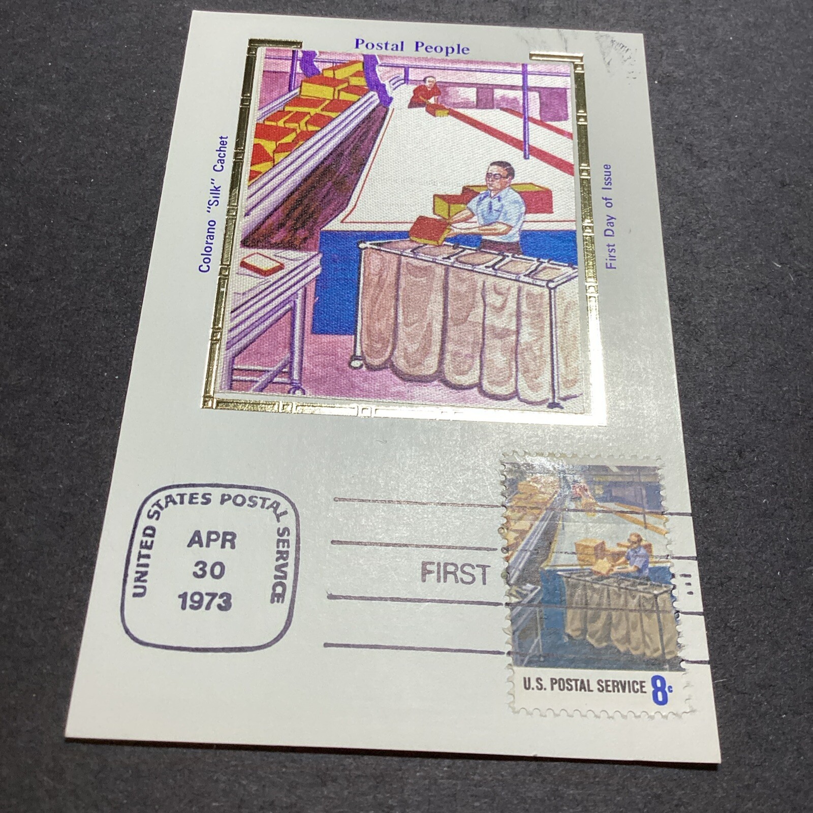 1973 POSTAL PEOPLE FIRST DAY OF ISSUE POSTAL CARD COLORANO SILK CACHET-US. Shipped with USPS Ground Advantage.