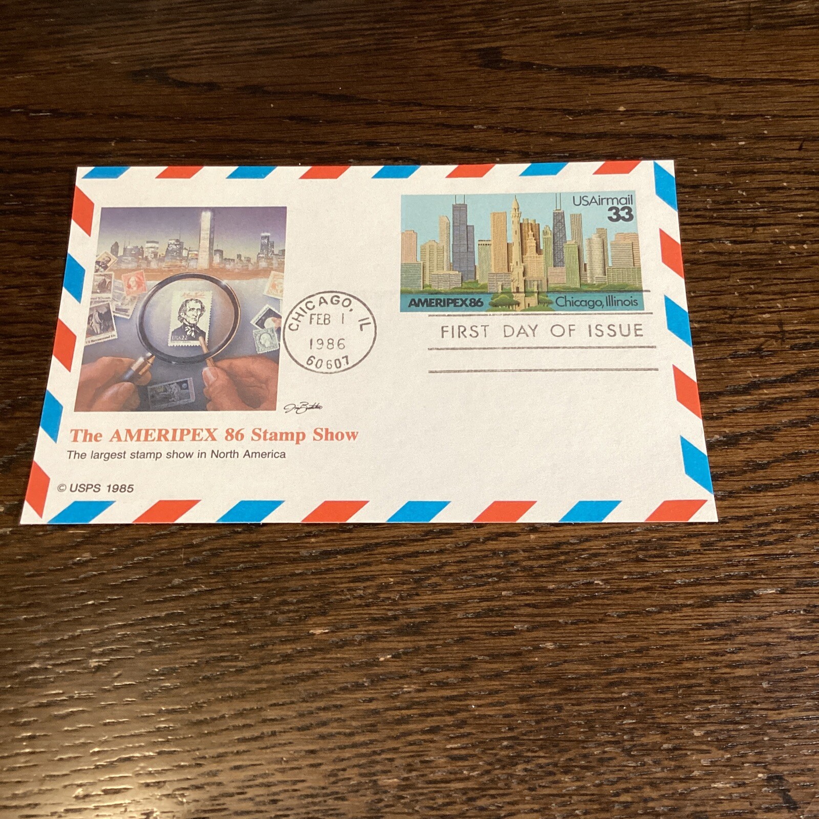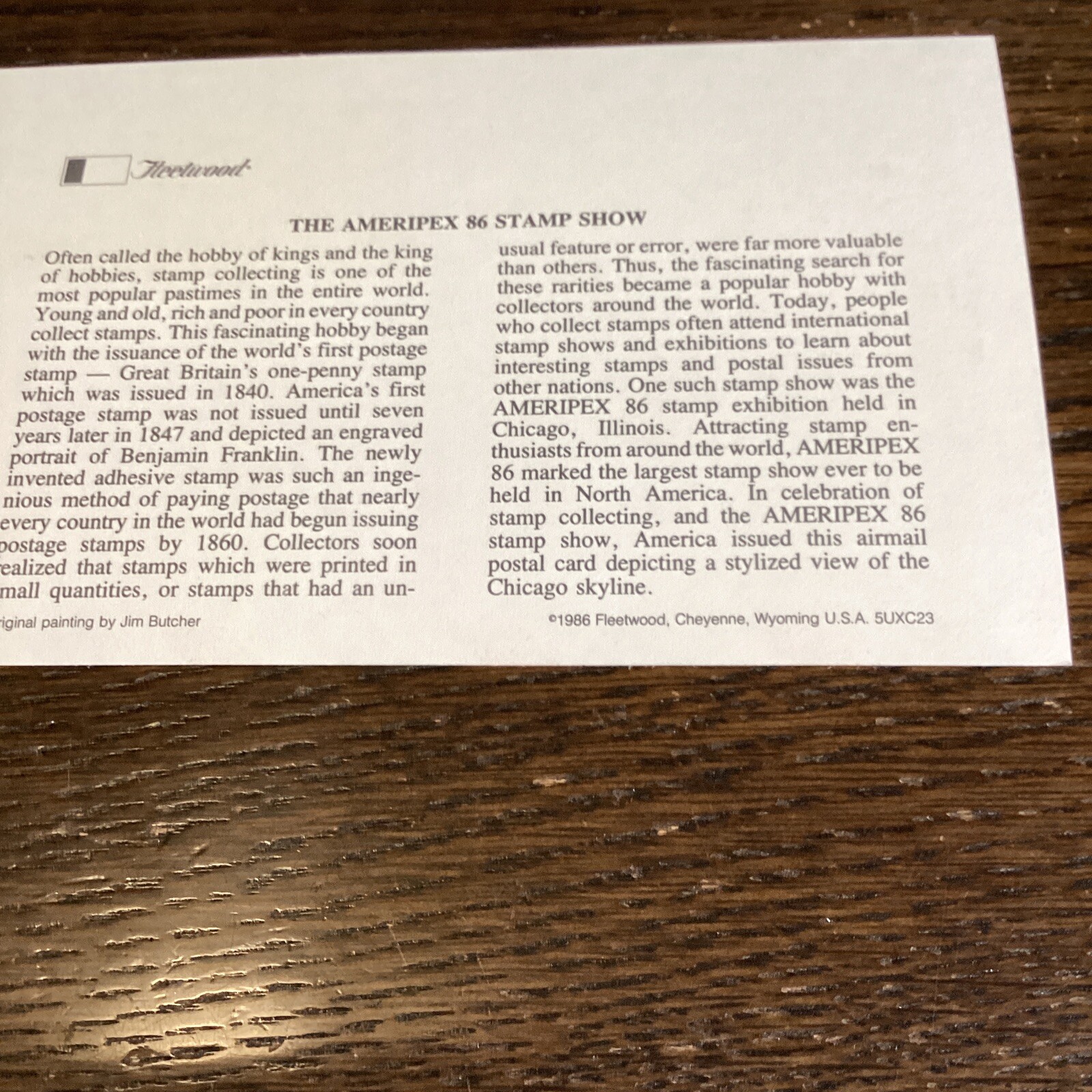 AMERIPEX 1986-CHICAGO STAMP SHOW FLEETWOOD FIRST DAY CARD VF Cond-US.