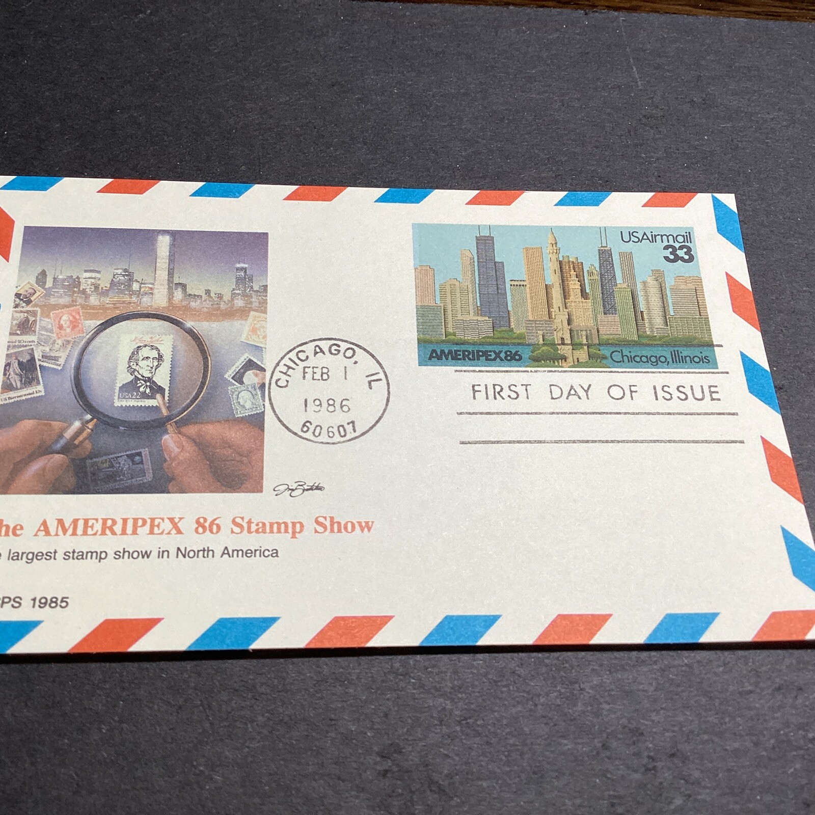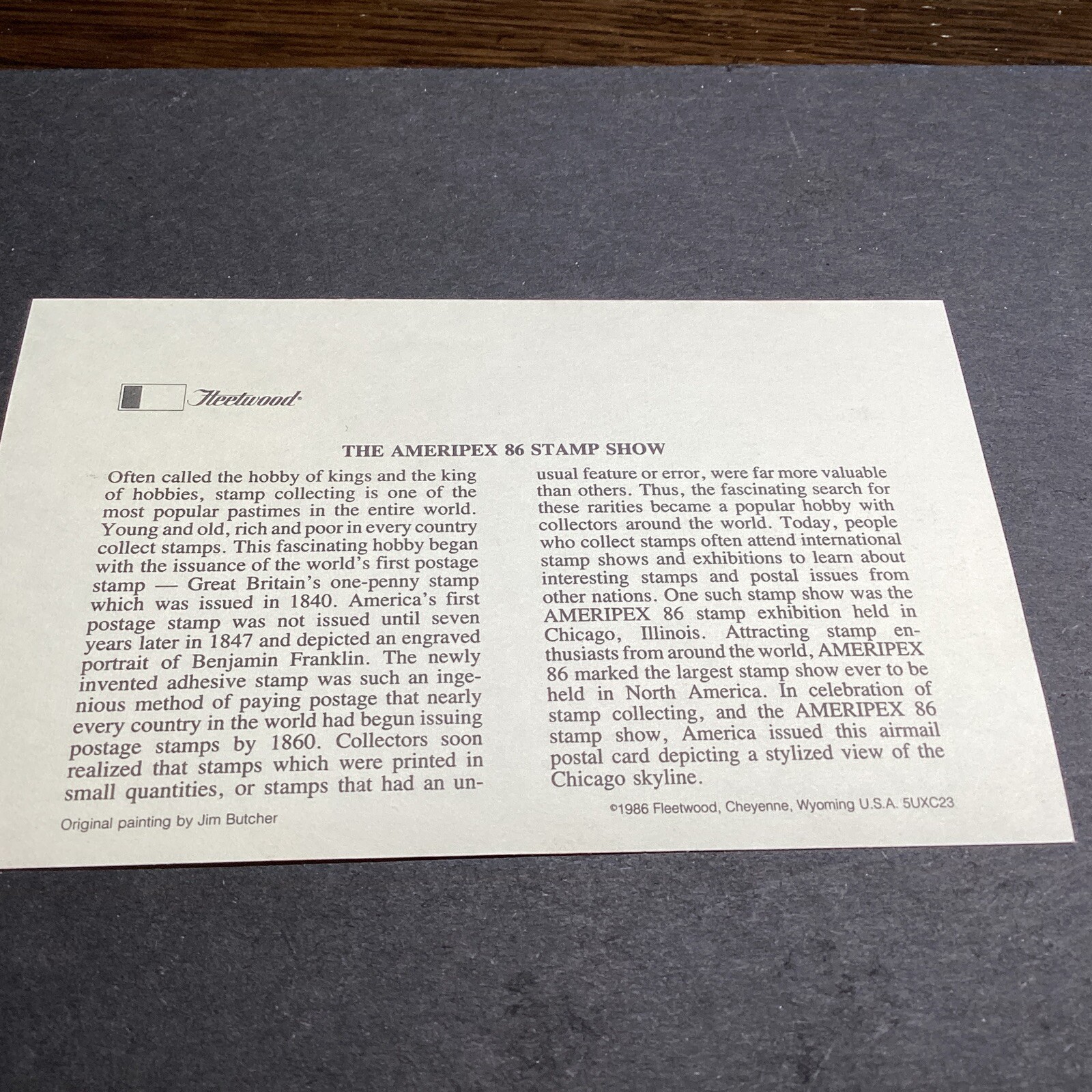 US FDC #UXC23 Fleetwood 1986 Chicago IL AMERIPEX '86 Airmail Postal Card.
