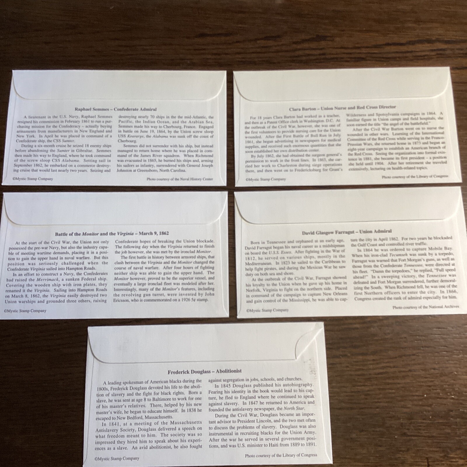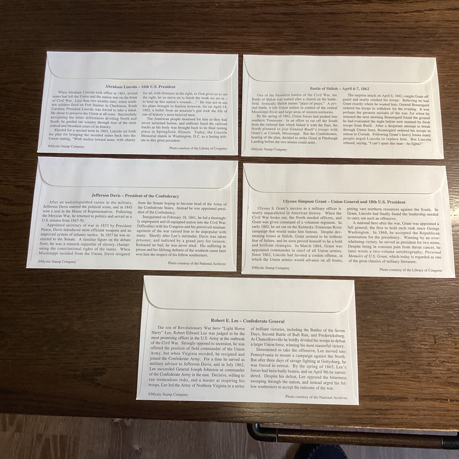 Civil War Classic Collection First Day Cover stamps 1995(Set Of 10).