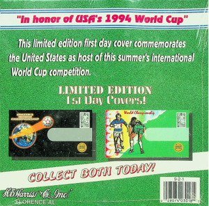 From the US Postal Service, a cellophane-sealed, first day cover (FDC) of a stamp commemorating the 1994 Soccer World Cup.  This FDC is from a limited edition of 10,000.