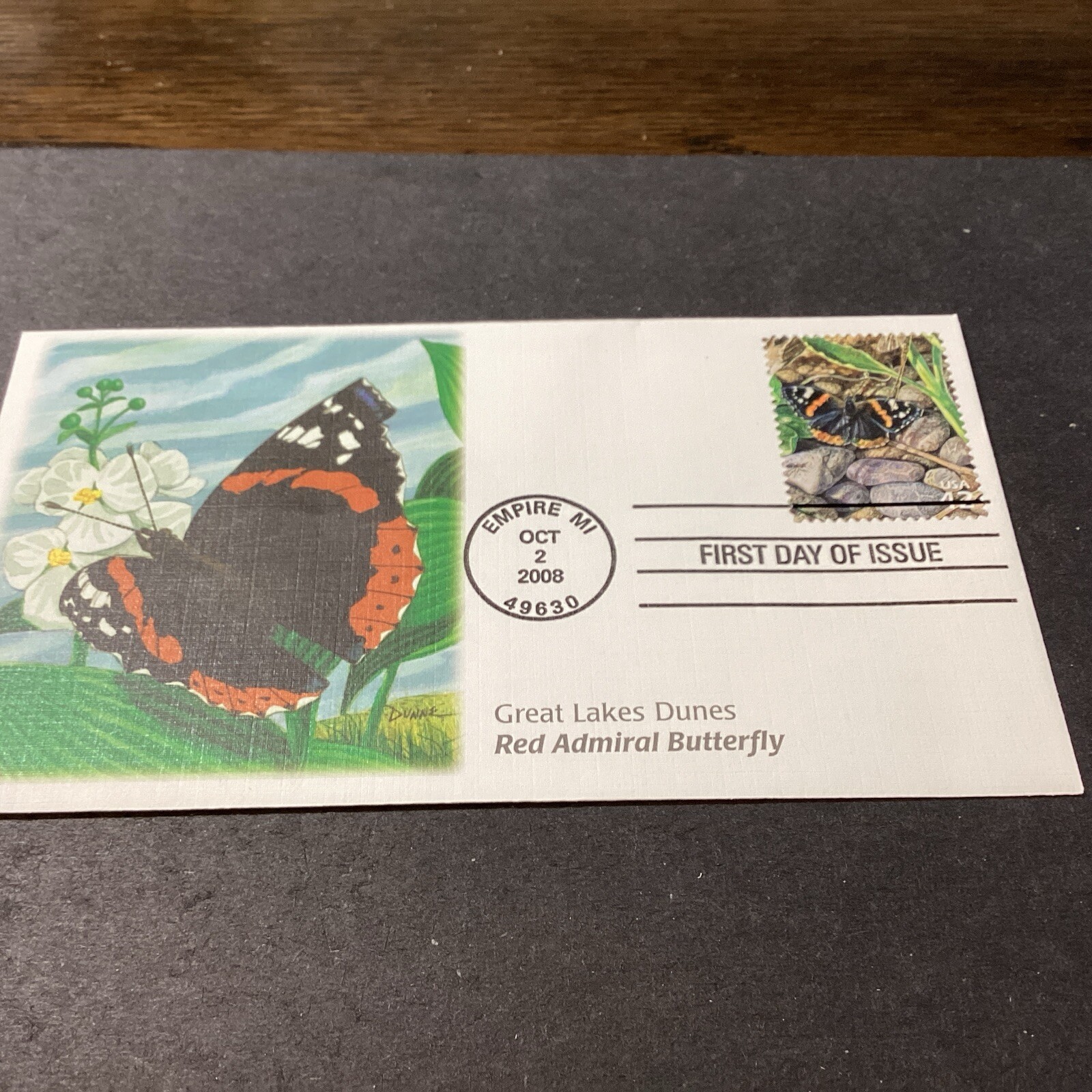 GREAT LAKES DUNES RED ADMIRAL BUTTERFLY 2008 FLEETWOOD CACHET FDC-US. Shipped with USPS Ground Advantage.