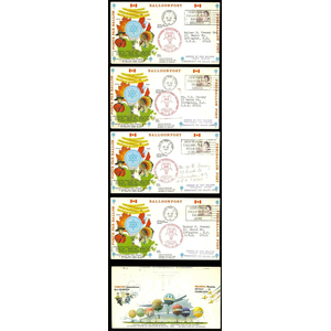 Four Balloon Post covers flown on same day - VF and SCARCE!