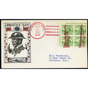 Statue of Liberty in Red Fancy Cancel Cover Liberty, Ariz 1933 - Stuart Katz