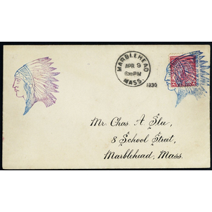 Indian Chief Fancy Cancel on Marblehead, MA Cover Extremely RARE - Stuart Katz