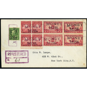 "MONEY MISS" 7 Nice Strikes! Fancy Cancel Registered Cover - Stuart Katz