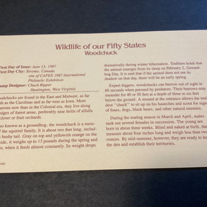 Wildlife of our Fifty States Woodchuck-22kt gold replica FDC June13,1987