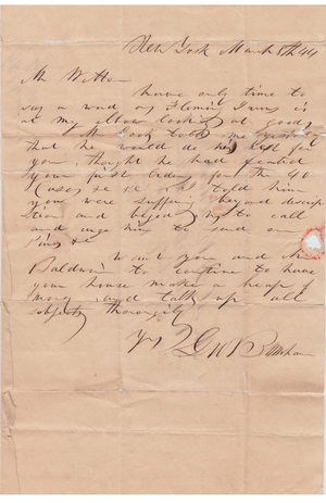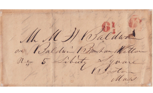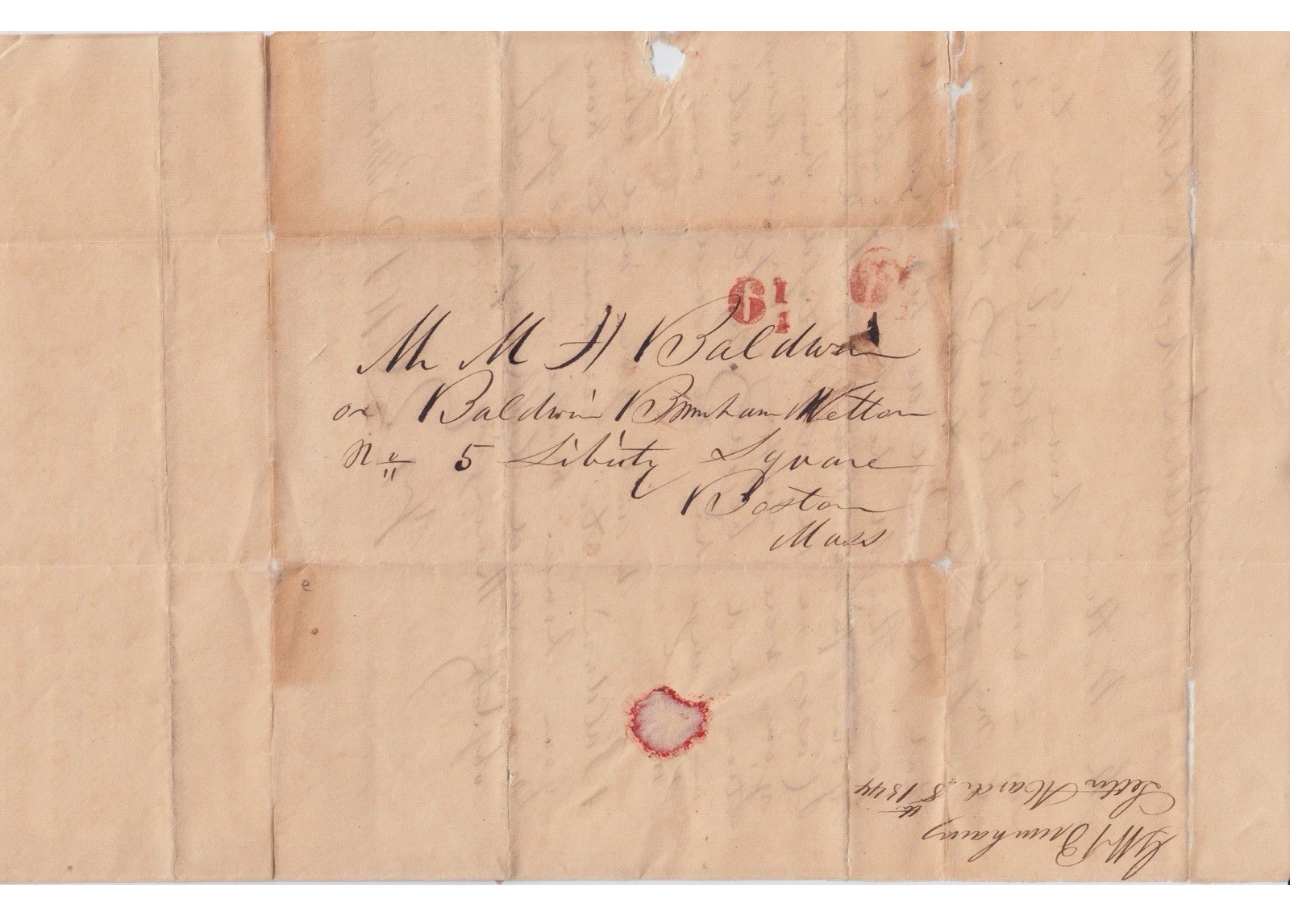 Entered mails in New York City March 8, 1844, carried by the independent mail firm Hale & Company. Addressed to “Mr. M.H. Baldwin, at Baldwin Burnham & Weston, No. 5 Liberty Sq., Boston, Mass.”