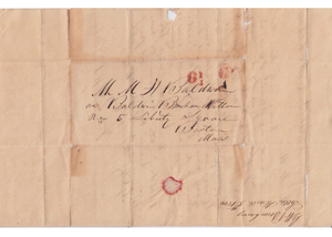 Throughout most of the 1816-1845 period the 6 ¼ manuscript rate appears. The earliest cover included in this census dates from 1824. It is possible that earlier covers exist but have not yet been identified, or that undated covers predate that item without our knowledge.