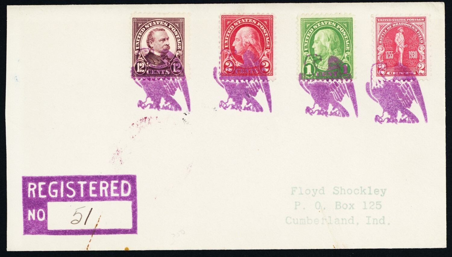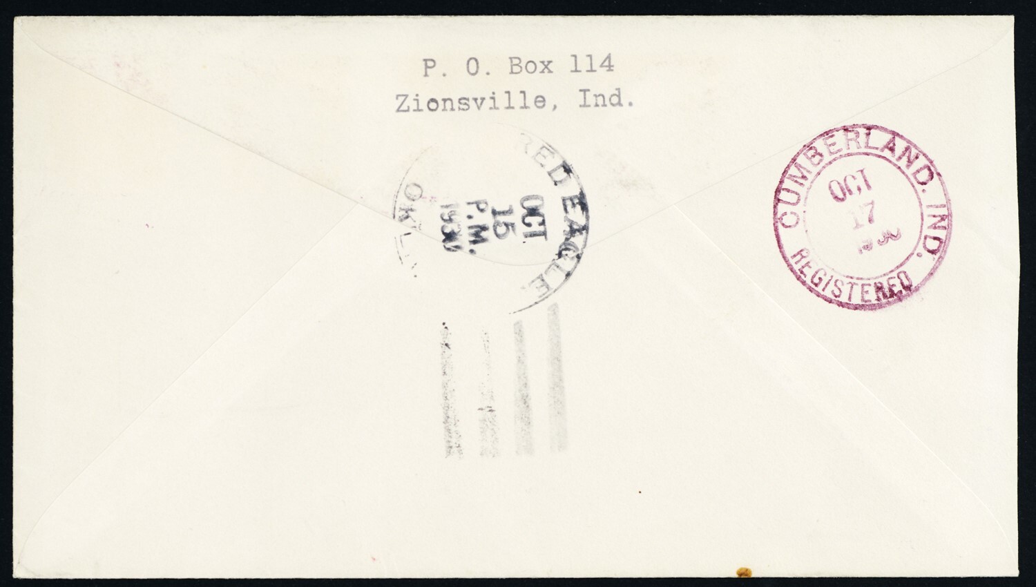 Eagle 1930 Red Eagle, OKLA VERY RARE Fancy Cancel Registered Cover - Stuart Katz