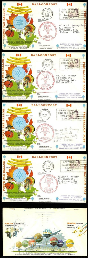 Four Balloon Post covers flown on same day - VF and SCARCE!