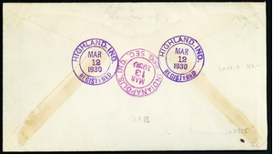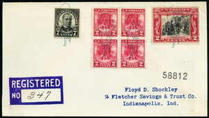 [Indiana] Highland Girl Skipping Rope in bluish green, four light strikes tie 17¢ postage on a Mar 2, 1930 Registered cover to Floyd Shockley in Indianapolis, Fine to Very Fine.