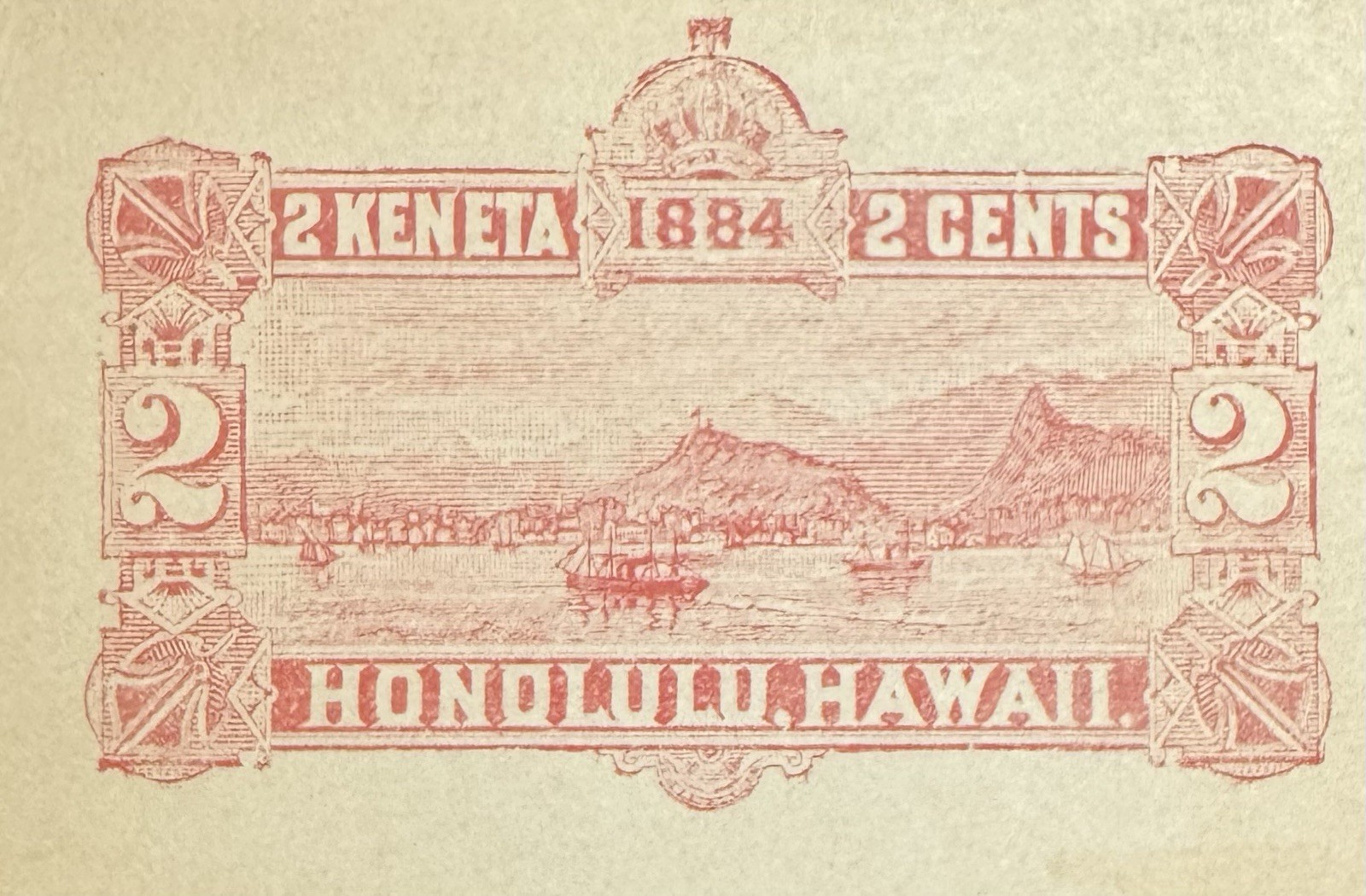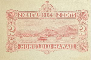 Up for sale is an original 1884 Hawaii 2¢ red “2 Keneta / 2 Cents” postal entire cut square (Scott U6).