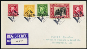 [Kentucky] Ed, Knights of Columbus Emblem, five excellent strikes tie 17¢ postage, on an Apr 30, 1930 Registered cover to Floyd Shockley in Indianapolis, Very Fine. The only recorded date of use by Loso & deWindt.