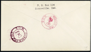 [Indiana] Mexico, small walking "Mexican" figure with Sombrero in purple, four light strikes tie 17¢ postage on an Oct 9, 1930 Registered to Floyd Shockley in Cumberland, Ind., Very Fine.