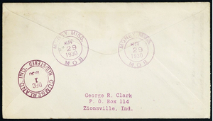 [Mississippi] Money, Money Bag in purple, three perfect strikes tie 17¢ postage on a Nov 29, 1930 Registered cover to Floyd Shockley in Indianapolis, Very Fine. Loso-deWindt 765.