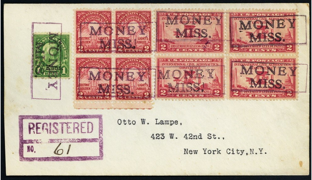 "MONEY MISS" 7 Nice Strikes! Fancy Cancel Registered Cover - Stuart Katz