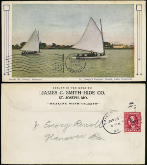 Sailing Boats St. Joseph, MO 6/15/1912 to Hanover, PA Stunning Cvr - Stuart Katz