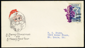 [Ohio] Good Hope, in purple, Very Fine strike, along with black killer bars, tie a 3¢ Byrd Expedition commemorative on a cover to H.O. Nouss in St. Louis, with a red & black Grimsland Santa Claus cachet; no Good Hope datestamp was applied, Very Fine.