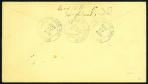 [Indiana] Highland, Shamrock in green, five Very Fine strikes tie 17¢ postage on a 1930 St. Patrick's Day Registered cover from the cancel's designer, C.A. Paige, to Pacolet Mills, S.C., Very Fine. The only date of use.