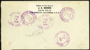 [California] Los Angeles, Pico Heights Sta., small Waving American Flag, eight nice strikes tie a block of 4 of 5¢ Beacon Airmails (C11) on a Feb 2, 1929 Registered Airmail cover to Chicago, Very Fine. A day later then Loso & deWindt's latest date of use. Loso-deWindt 677.