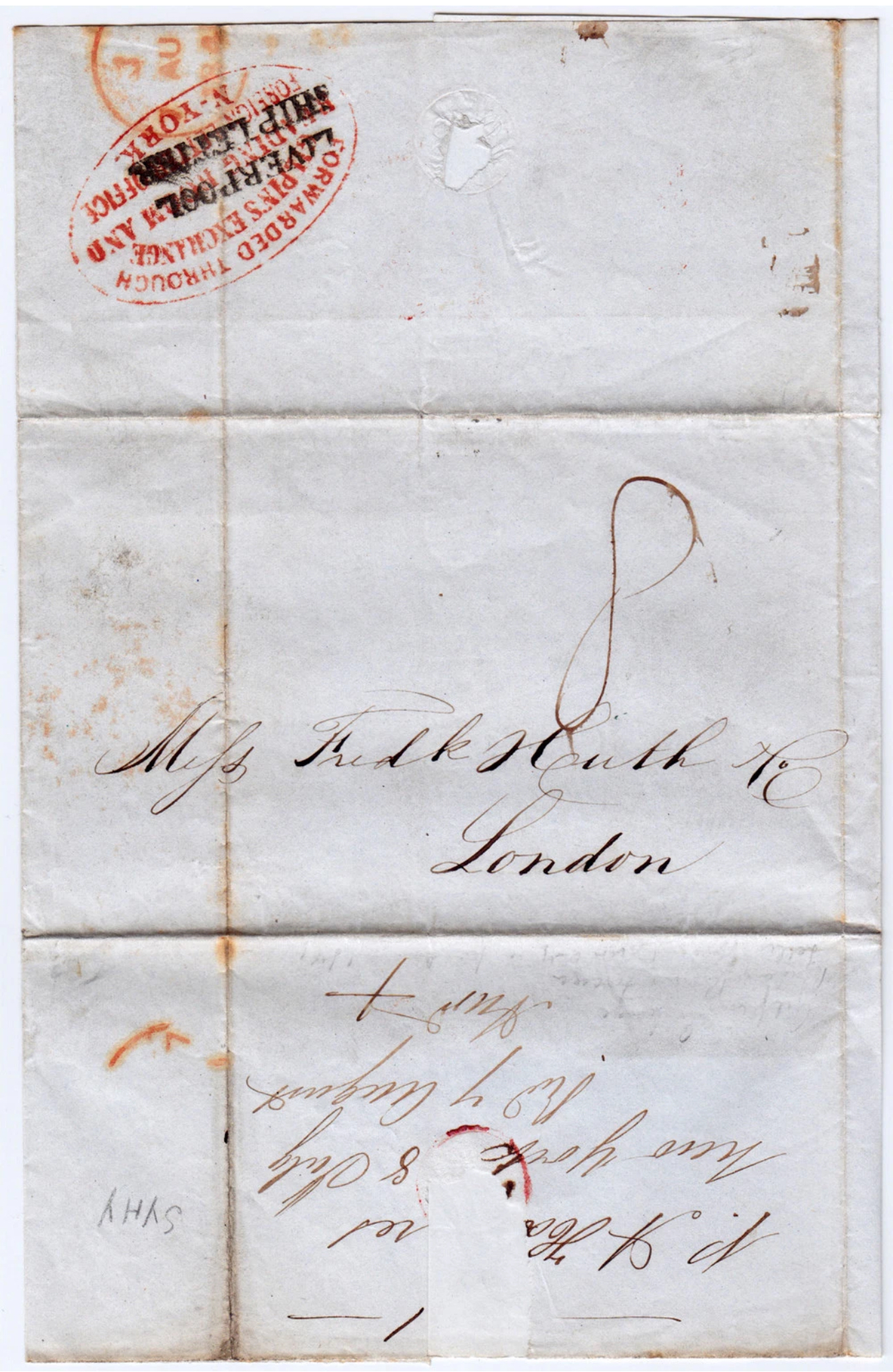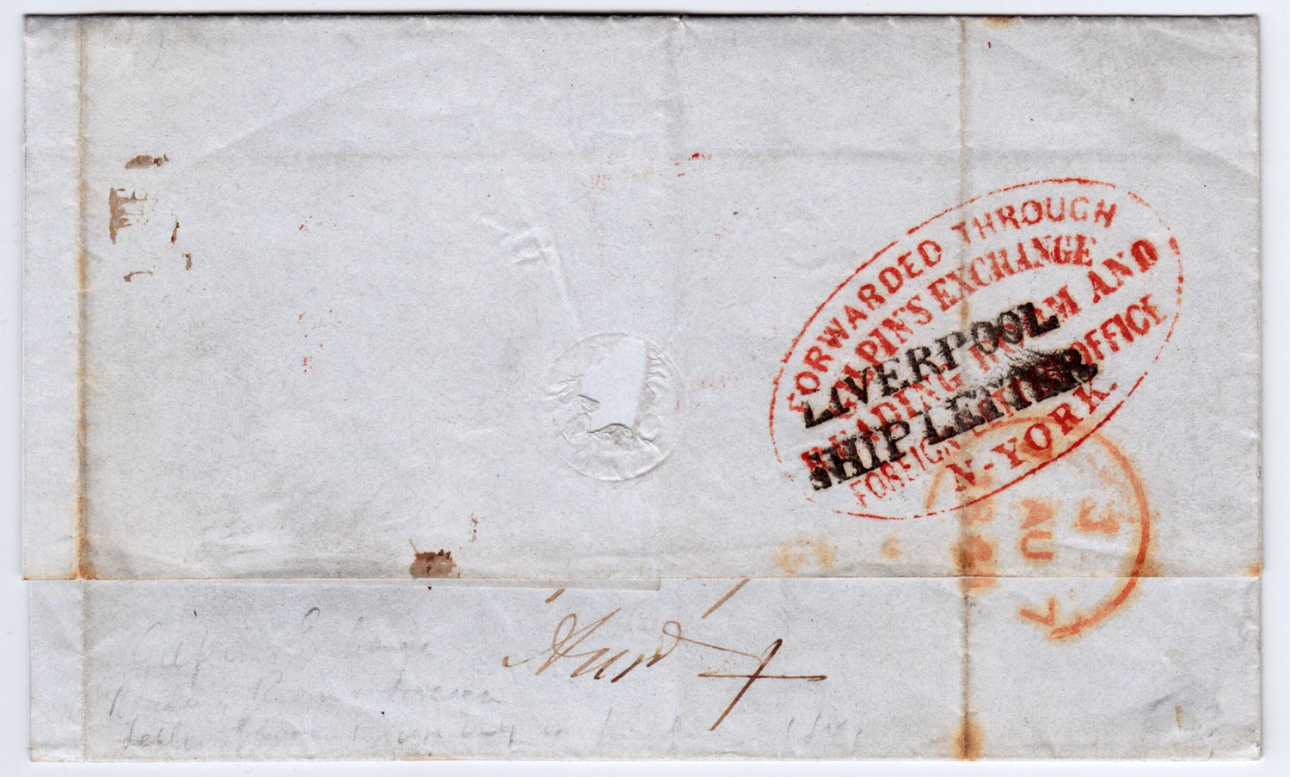 - On reverse, backstamp in red "FORWARDED THROUGH GILPIN'S EXCHANGE READING ROOM AND FOREIGN LETTER OFFICE N-YORK";