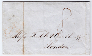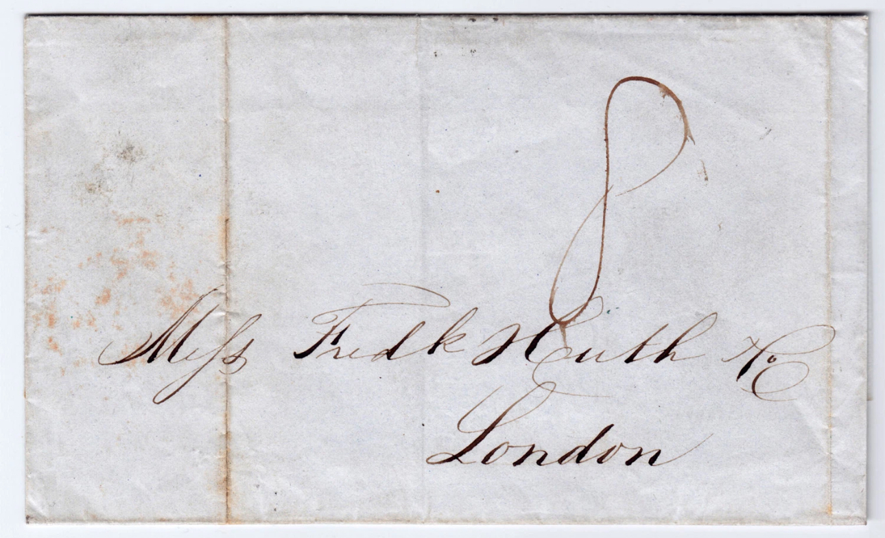 - On front, black pen "8" (8 pence British incoming ship letter fee);