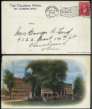 The Colonial Hotel Mt. Clemens, MI 1915 Advertising Cover - Stuart Katz