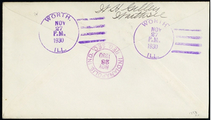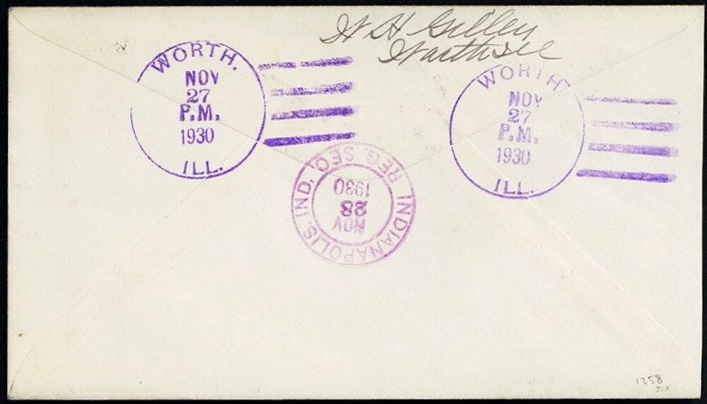 [Illinois] Worth, Turkey, three Very Fine strikes (much more detailed than the Loso & deWindt tracing) tie 17¢ postage on a Thanksgiving Day, Nov 27, 1930 Registered cover from W.H. Gilley to Floyd Shockley in Indianapolis, Very Fine.