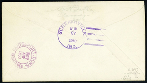 [Indiana] Mexico, small walking "Mexican" figure with Sombrero in purple, four light strikes tie 17¢ postage on an Oct 9, 1930 Registered to Floyd Shockley in Cumberland, Ind., Very Fine. Loso-deWindt 745.