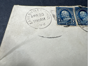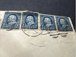 US Scott#247- 1c Franklin Stamps X4 on Cover Cancel 1898-April30th Ohio. Shipped with USPS Ground Advantage.