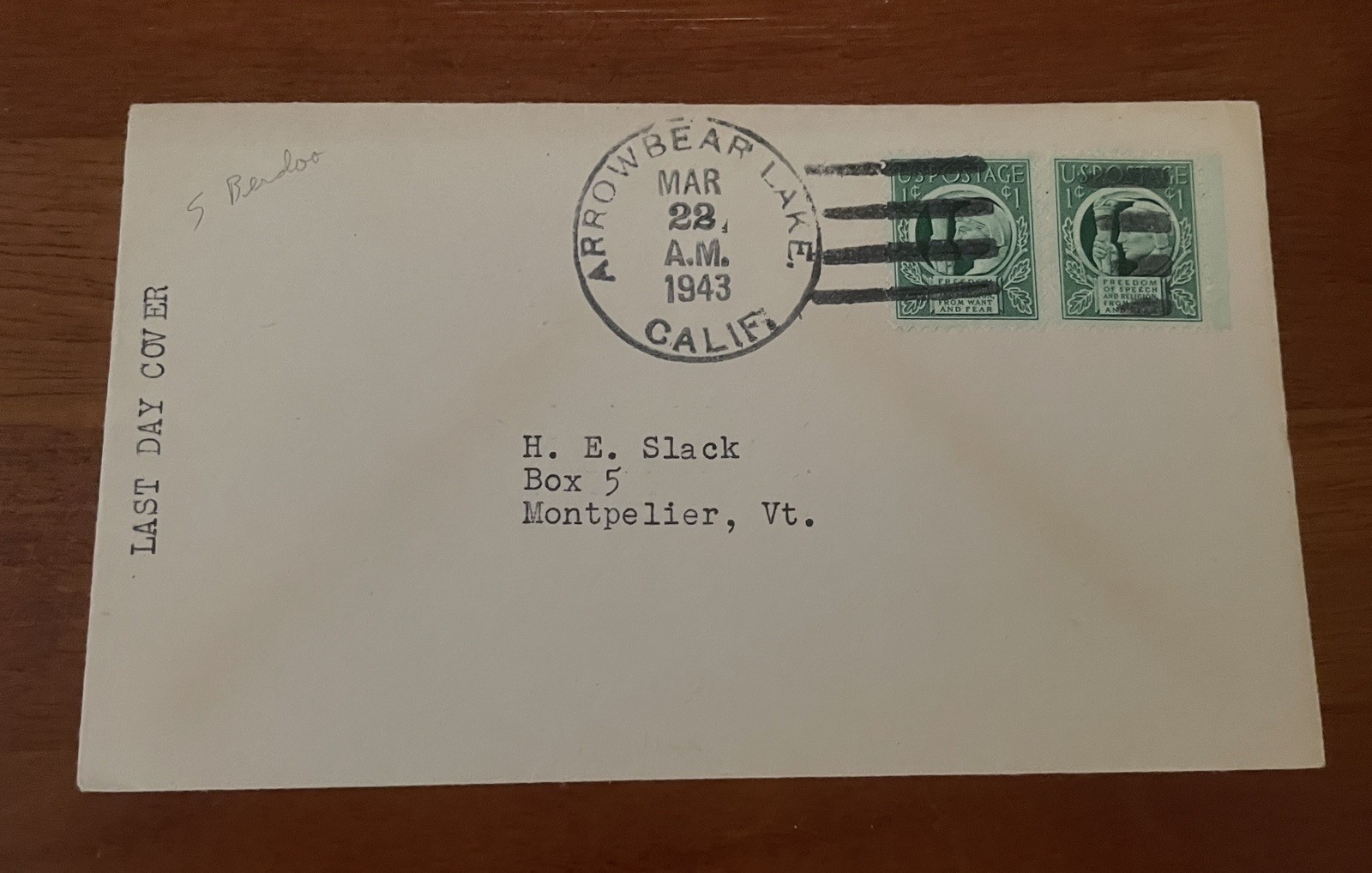 US Stamps 908 on Cover WWII Four Freedoms Last Day Cover. Shipped with USPS Ground Advantage.
