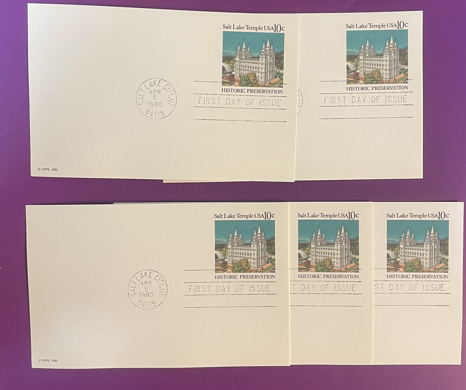 US Stamps Postal Card UX83 10c Salt Lake City Mormon Temple, First Day Issue FDC.