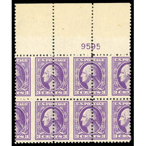 530, RARE MISPERFORATION ERROR - TOP PLATE BLOCK OF SIX - Stuart Katz