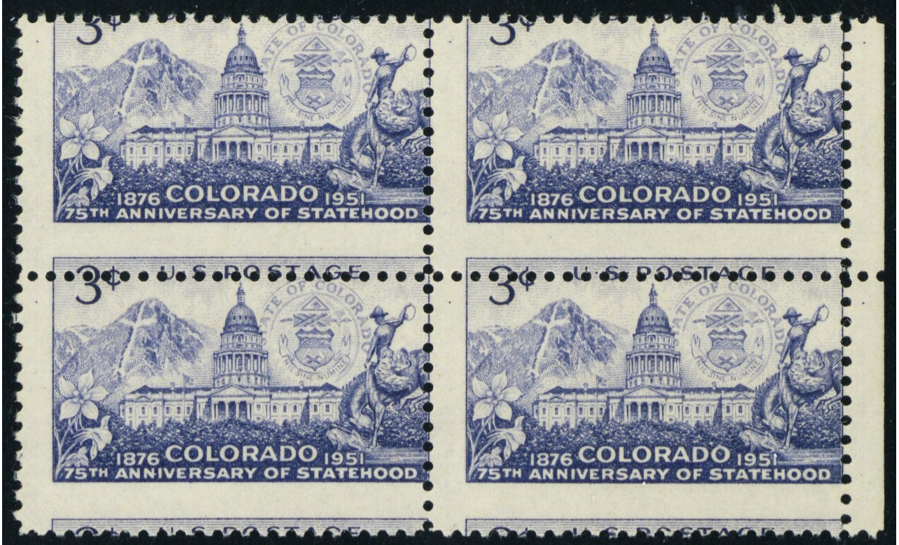 1001, Mint NH 3¢ Colorado Misperf Shift Error Block of Four - Stuart Katz