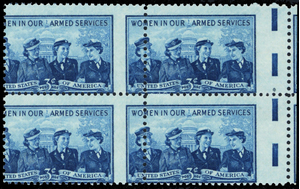 1013, Mint NH 3¢ Large Misperfed Freak Error Block of Four * Stuart Katz