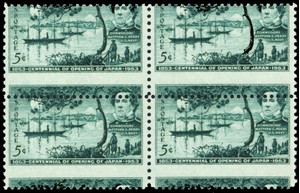 1021, Mint NH 5¢ Scarce Misperfed Error Block of Four Stamps - Stuart Katz