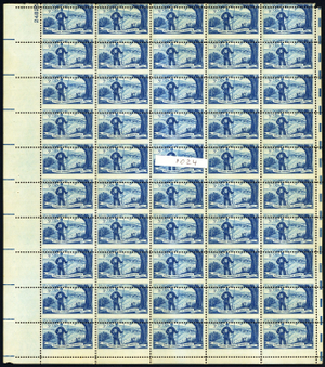 1024, Mint NH 3¢ Misperfed Error Sheet of 100 Stamps - Stuart Katz