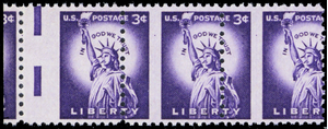 1035, 3¢ Scarce Misperfed Error Strip of 3 Stamps Mint NH - Stuart Katz