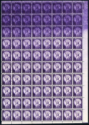 1035, Mint NH 3¢ Over Inked Error Part Sheet of 80 Stamps - Stuart Katz