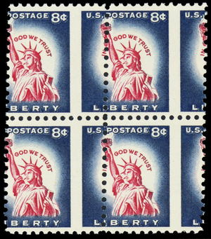 1042, Mint NH 8¢ Misperforation Error Block of Four Liberty Stamps - Stuart Katz